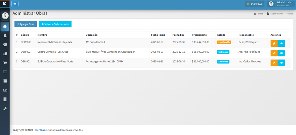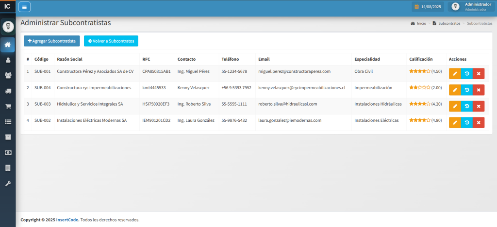 La Gestión de Subcontratistas implica coordinar, supervisar y evaluar el trabajo de empresas o profesionales externos contratados para una obra. Controla plazos, costos, calidad y cumplimiento de los términos establecidos en el contrato. Favorece la comunicación y la resolución de incidencias para mantener la continuidad del proyecto. Una gestión efectiva fortalece las relaciones comerciales y asegura resultados alineados con los objetivos del cliente.